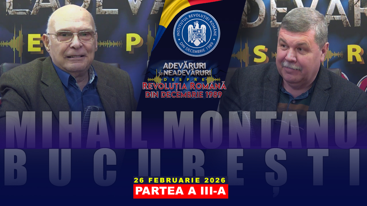 În cadrul unui nou episod din emisiunea „ADEVĂRURI ȘI NEADEVĂRURI DESPRE REVOLUȚIA ROMÂNĂ DIN DECEMBRIE 1989”, istoricul Constantin CORNEANU a dialogat cu inginerul Mihail MONTANU despre evenimentele petrecute în ziua de 22 Decembrie 1989 în sediul fostului CC al PCR, la sediul Televiziunii Române, precum și la Ministerul Apărării Naționale în după-amiaza acelei zile. Inginerul Mihail MONTANU a fost implicat în modul în care s-a constituit noua putere politică din România în acele momente, fiind un martor privilegiat, și, totodată, a fost implicat activ în evoluția evenimentelor de pe scena politică românească post-decembristă. Vă invităm să urmăriți a III-a parte a acestui interviu, joi, 26 februarie 2026, cu începere de la ora 18:00.